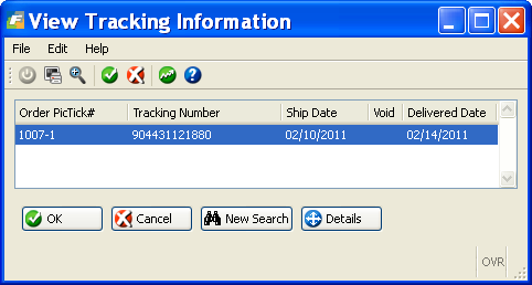 To view the tracking information for your sales order go to Update Customer Orders, find your sales order number, and click on the tracking button on the toolbar.