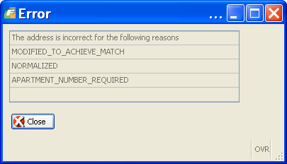 If the address is not a complete or valid address you will receive an error message. Here is one example of an error you may receive: